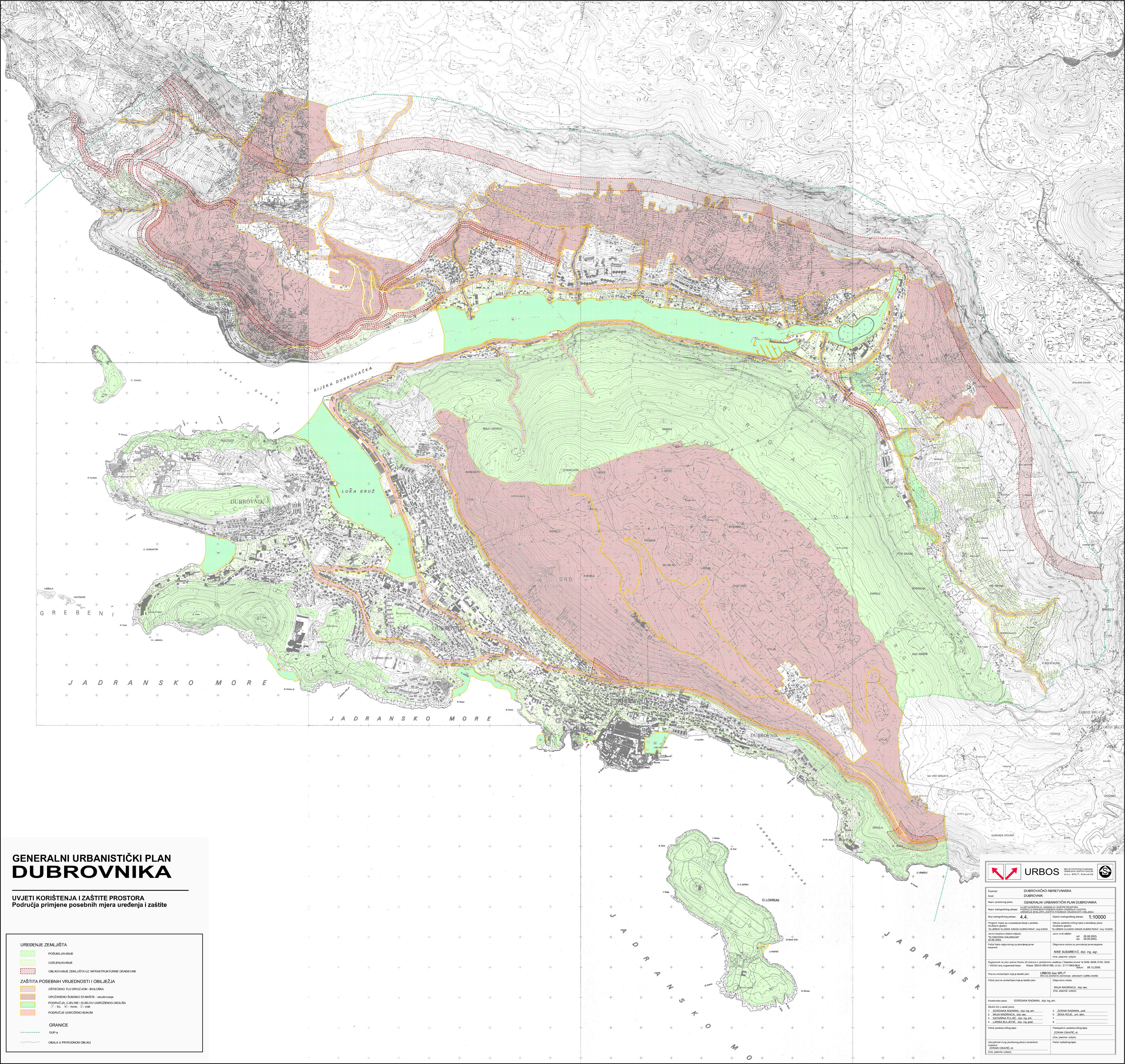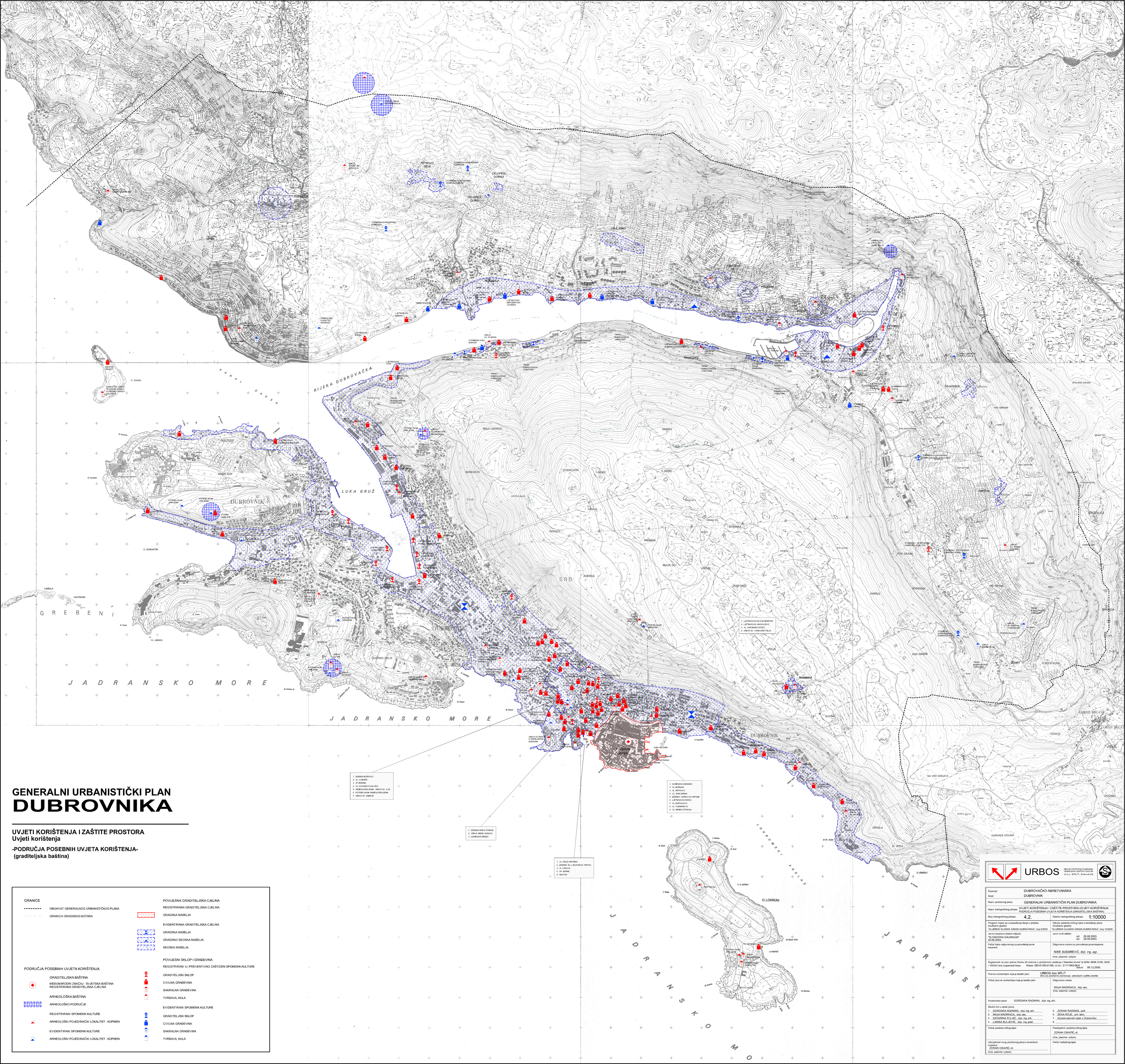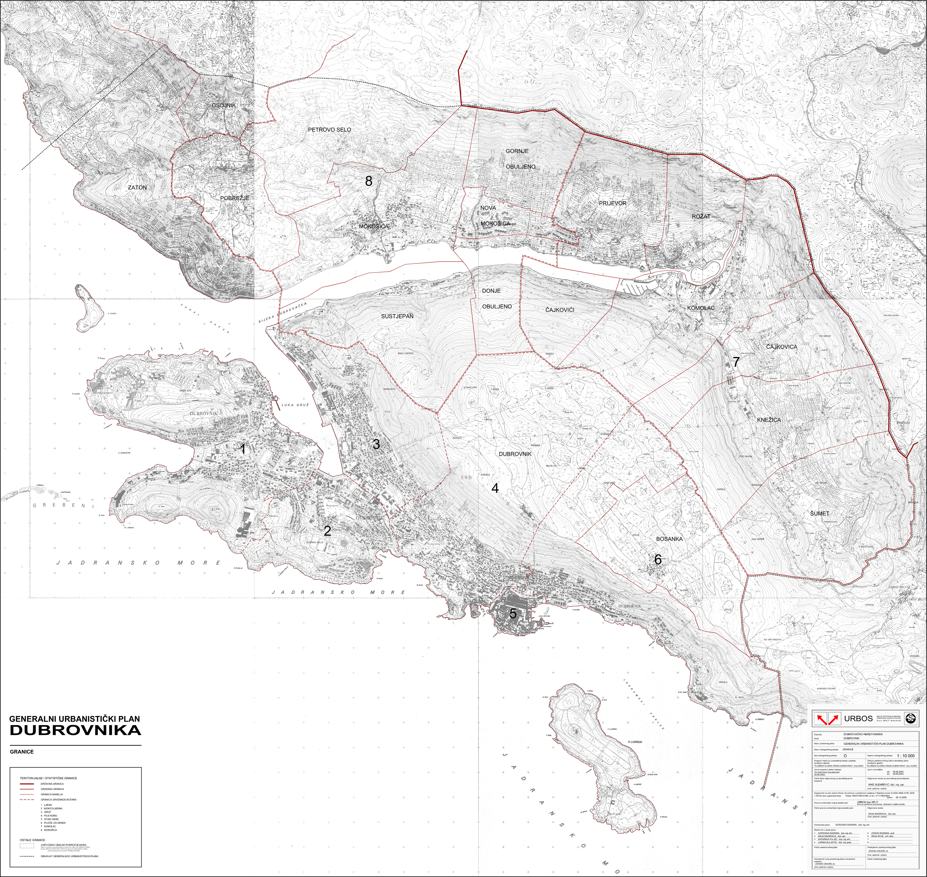 Generalni urbanistički plan Grada Dubrovnika Tekstualni dio:Službeni glasnik Grada Dubrovnika, br. 10/05.Obrazloženje Grafički dio:KP 0. GraniceKP 1. Korištenje i namjena prostoraKP 2. Mreža gospodarskih i društvenih djelatnostiKP 3.1. Prometna i komunalna infrastrukturna mreža - prometKP 3.2. Prometna i komunalna infrastrukturna mreža - pošta i telekomunikacijeKP 3.3. Prometna i komunalna infrastrukturna mreža - energetski sustavKP 3.4. Prometna i komunalna infrastrukturna mreža - vodnogospodarski sustav - korištenje vodaKP 3.5. Prometna i komunalna infrastrukturna mreža - odvodnja otpadnjih (fekalnih) vodaKP 3.6. Prometna i komunalna infrastrukturna mreža - odvodnja otpadnih (oborinskih) vodaKP 4.1. Uvjeti korištenja, uređenja i zaštite prostora - područja posebnih uvjeta korištenja (prirodna baština)KP 4.2. Uvjeti korištenja, uređenja i zaštite prostora - područja posebnih uvjeta korištenja (graditeljska baština)KP 4.3. Uvjeti korištenja, uređenja i zaštite prostora - područja posebnih uvjeta korištenja (krajobraz)KP 4.4. Uvjeti korištenja, uređenja i zaštite prostora - područja primjene posebnih mjera uređenja i zaštite - uređenje zemljišta, zaštita posebnih vrijednosti i obilježjaKP 4.5. Oblici korištenja i način gradnje - urbana pravilaKP 4.6. Uvjeti korištenja, uređenja i zaštite prostora - područja primjene posebnih mjera uređenja i zaštite - područja i dijelovi primjene planskih mjera zaštite