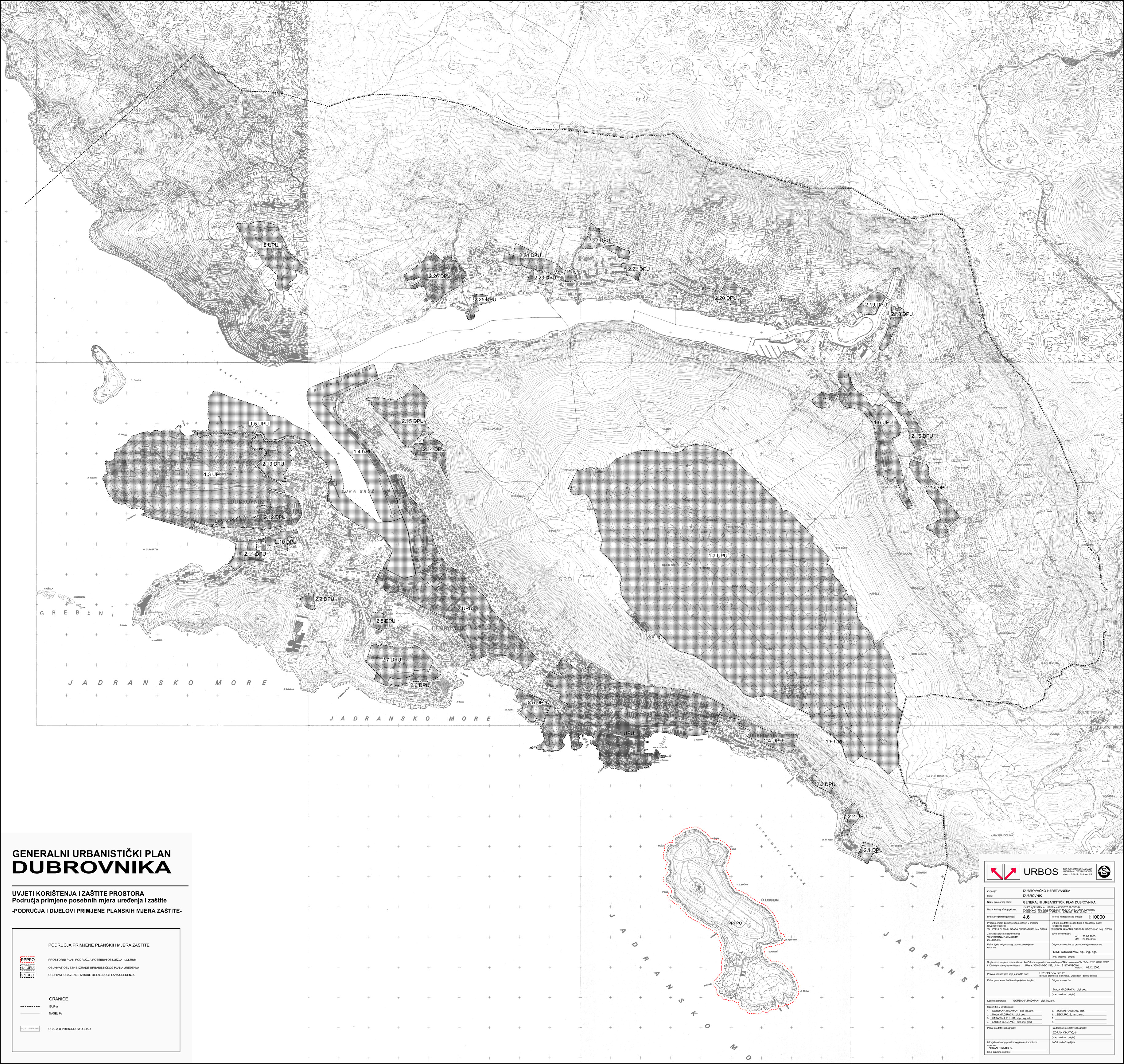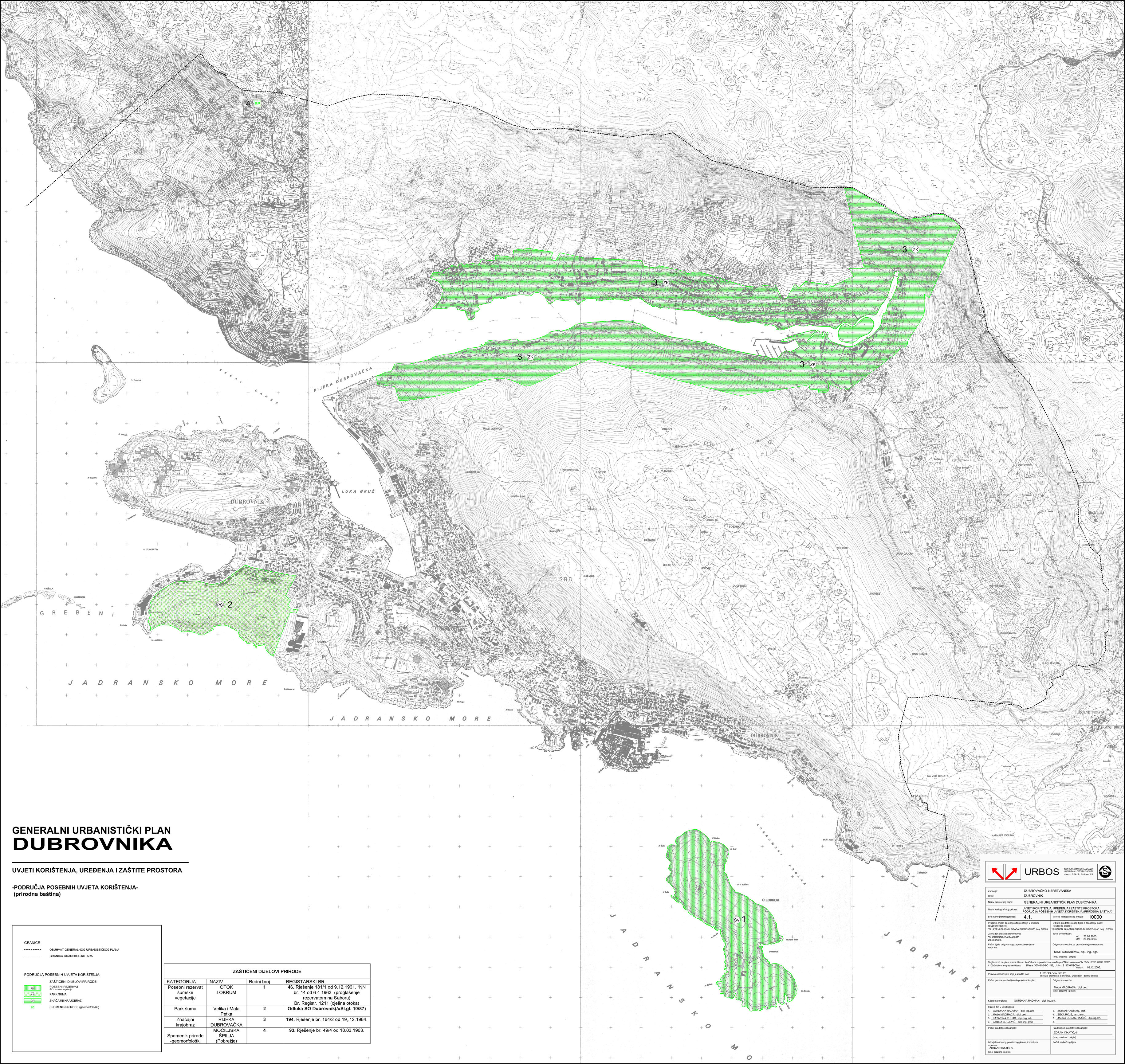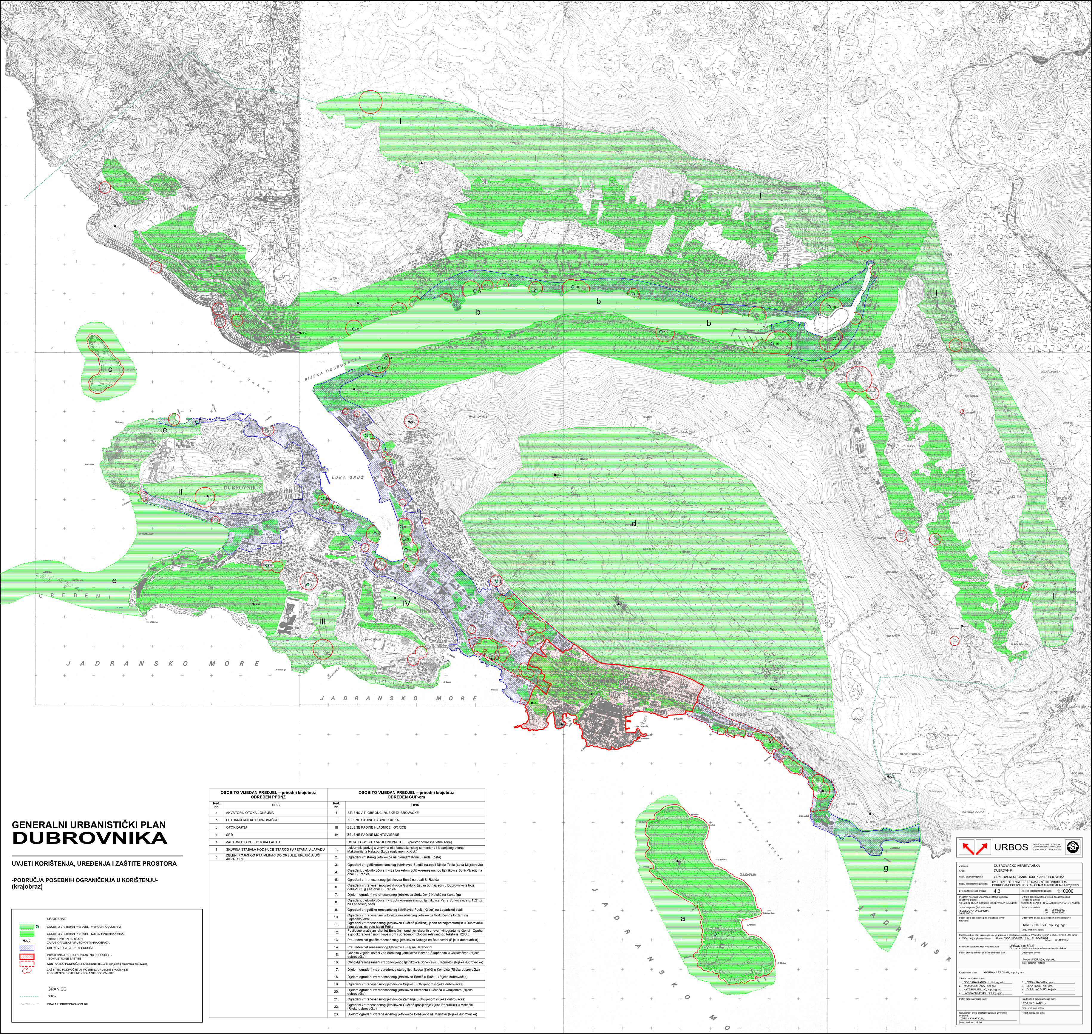 Generalni urbanistički plan Grada Dubrovnika Tekstualni dio:Službeni glasnik Grada Dubrovnika, br. 10/05.Obrazloženje Grafički dio:KP 0. GraniceKP 1. Korištenje i namjena prostoraKP 2. Mreža gospodarskih i društvenih djelatnostiKP 3.1. Prometna i komunalna infrastrukturna mreža - prometKP 3.2. Prometna i komunalna infrastrukturna mreža - pošta i telekomunikacijeKP 3.3. Prometna i komunalna infrastrukturna mreža - energetski sustavKP 3.4. Prometna i komunalna infrastrukturna mreža - vodnogospodarski sustav - korištenje vodaKP 3.5. Prometna i komunalna infrastrukturna mreža - odvodnja otpadnjih (fekalnih) vodaKP 3.6. Prometna i komunalna infrastrukturna mreža - odvodnja otpadnih (oborinskih) vodaKP 4.1. Uvjeti korištenja, uređenja i zaštite prostora - područja posebnih uvjeta korištenja (prirodna baština)KP 4.2. Uvjeti korištenja, uređenja i zaštite prostora - područja posebnih uvjeta korištenja (graditeljska baština)KP 4.3. Uvjeti korištenja, uređenja i zaštite prostora - područja posebnih uvjeta korištenja (krajobraz)KP 4.4. Uvjeti korištenja, uređenja i zaštite prostora - područja primjene posebnih mjera uređenja i zaštite - uređenje zemljišta, zaštita posebnih vrijednosti i obilježjaKP 4.5. Oblici korištenja i način gradnje - urbana pravilaKP 4.6. Uvjeti korištenja, uređenja i zaštite prostora - područja primjene posebnih mjera uređenja i zaštite - područja i dijelovi primjene planskih mjera zaštite