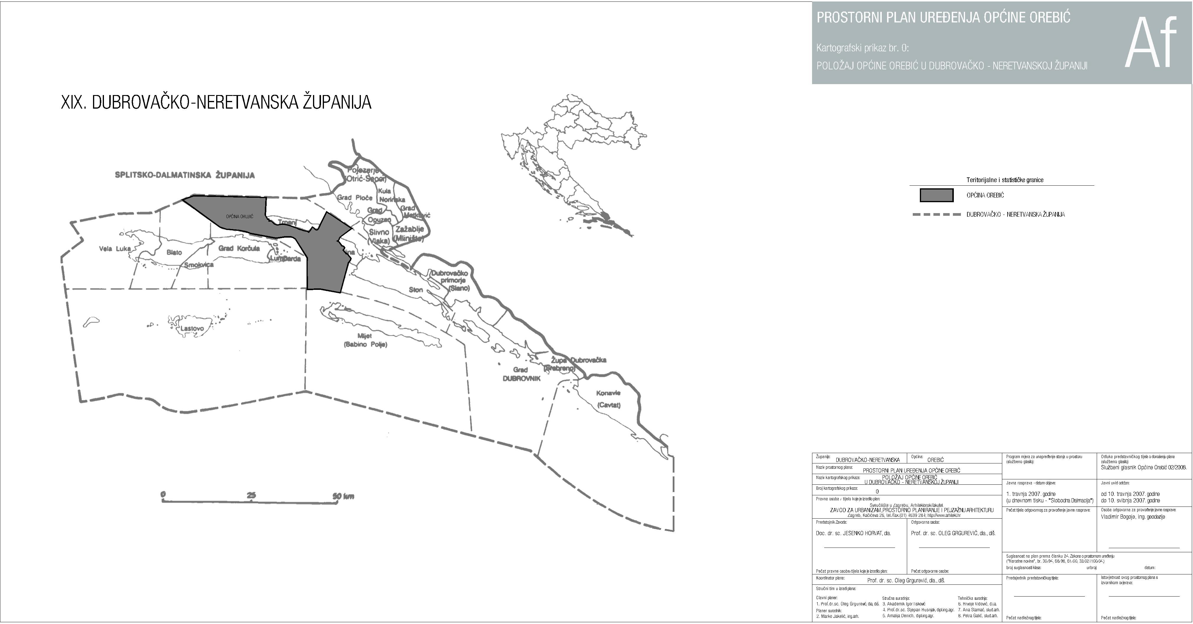 KP 0. Položaj općine Orebić u Dubrovačko-Neretvanskoj Županiji